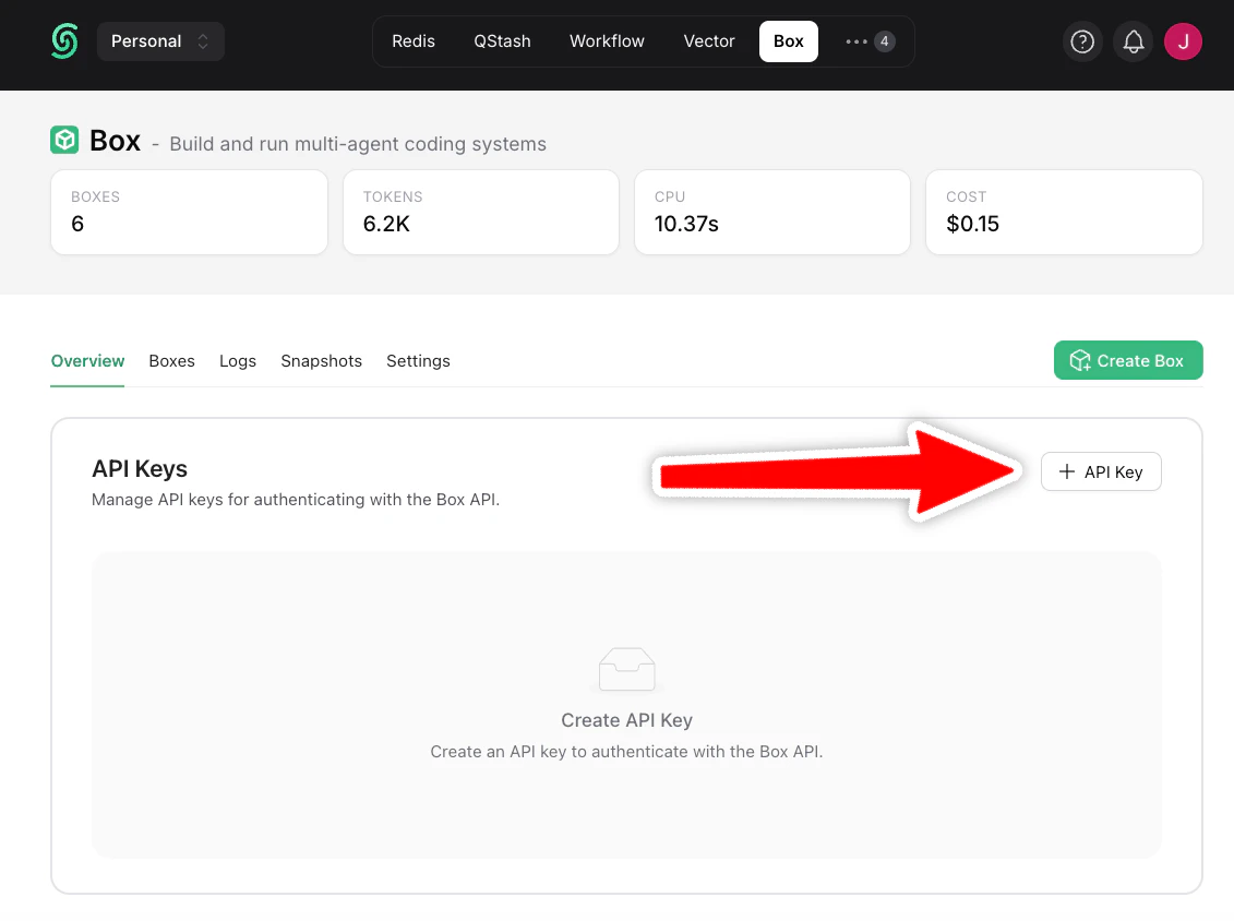 Navigate to the Upstash Console and create a new Box API key.